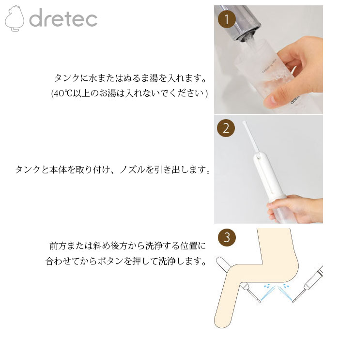 ●使用できる水量はたっぷり140ml。1回の洗浄に十分な容量です