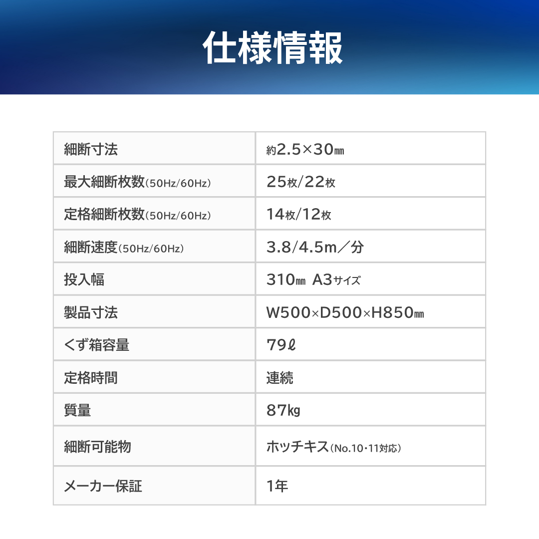 ●定格細断枚数(50/60Hz) : 14/12枚