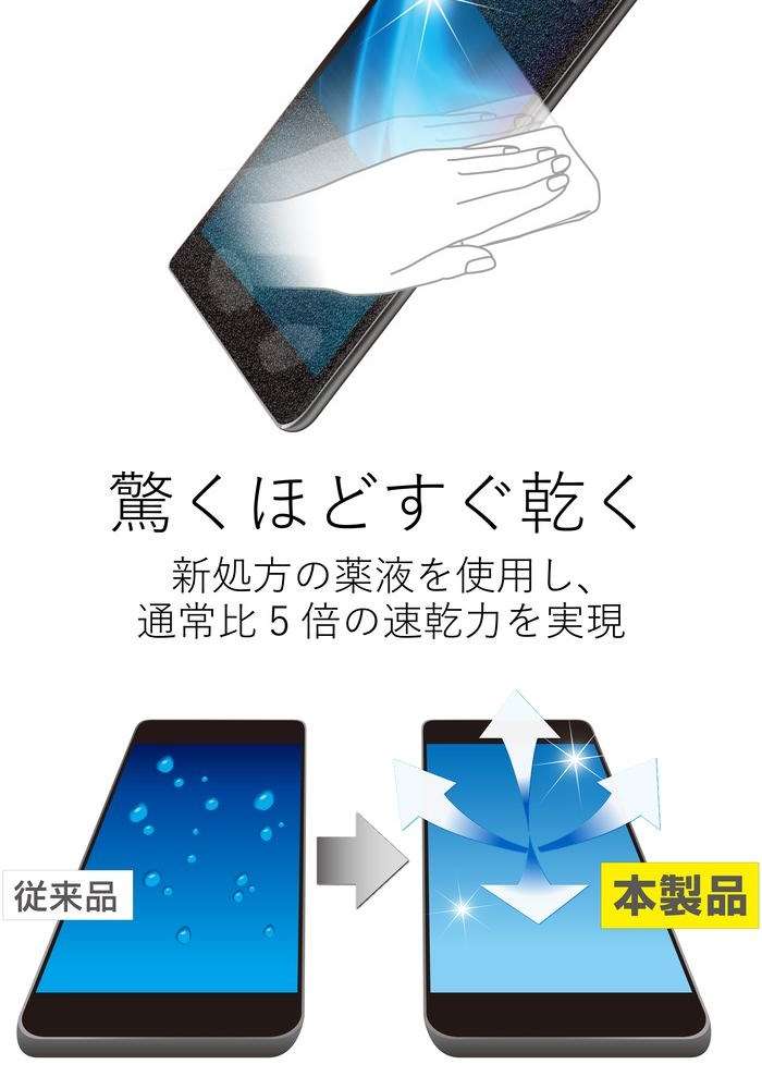● クリーニング後の速乾性を追求し、皮脂汚れや指紋汚れをさっとひと拭きで除去できる超速乾タイプです