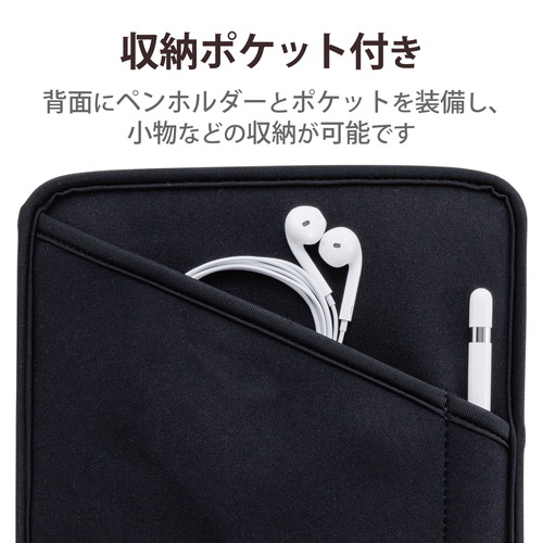 ●本体背面にはペンホルダーとポケットを装備しているので、タッチペンや小物の収納も可能です。