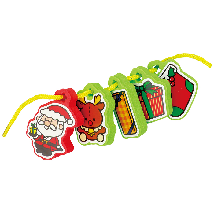 ●ソリにプレゼントを置いてサンタさんのお手伝いをしよう!紐通しもできる