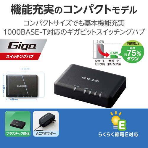 ●らくらく節電機能により接続していないポート、リンクしていないポートを自動的に判別し、電力供給を抑えます。パソコンがシャットダウンしている環境では、大幅な電力の節約を実現することができる、省エネ法に準拠したスイッチングハブです。