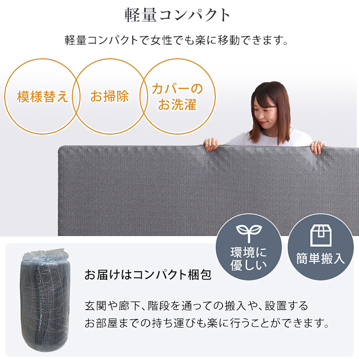 ●梱包をコンパクトにし、配送コスト削減と環境への配慮を実現しています。商品開封時の移動も楽になります。