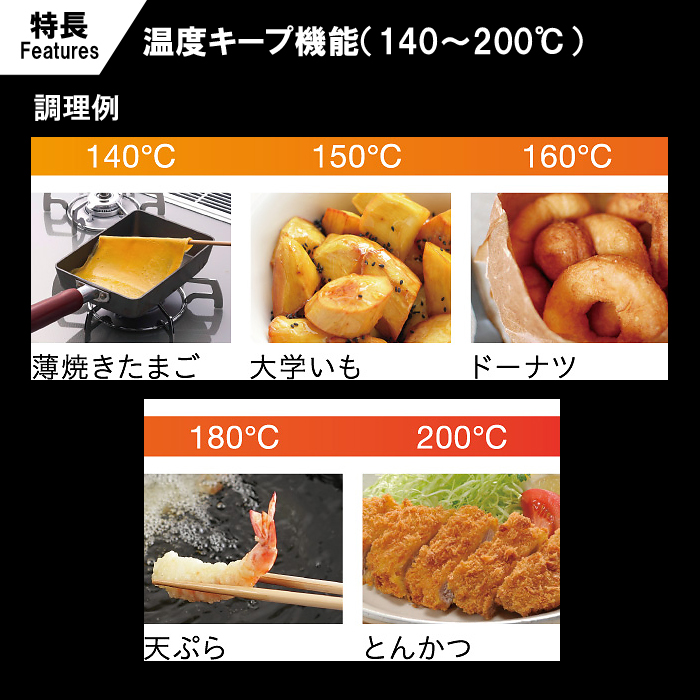●・温度キープ機能:140~200℃(7段階)左右コンロ