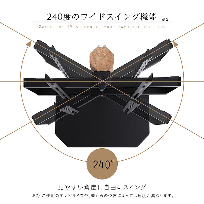 ●240度のスイングタイプで32 65インチのテレビを取付できます。