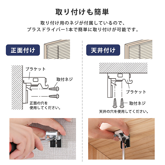 ●専用の金具でカーテンレールにも取り付けでき穴あけ不要なので賃貸でもご使用いただけます。