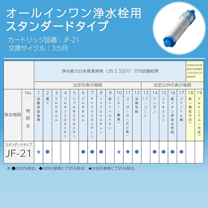 ●【浄水能力(日本産業規格(JIS S 3201)による試験結果)】