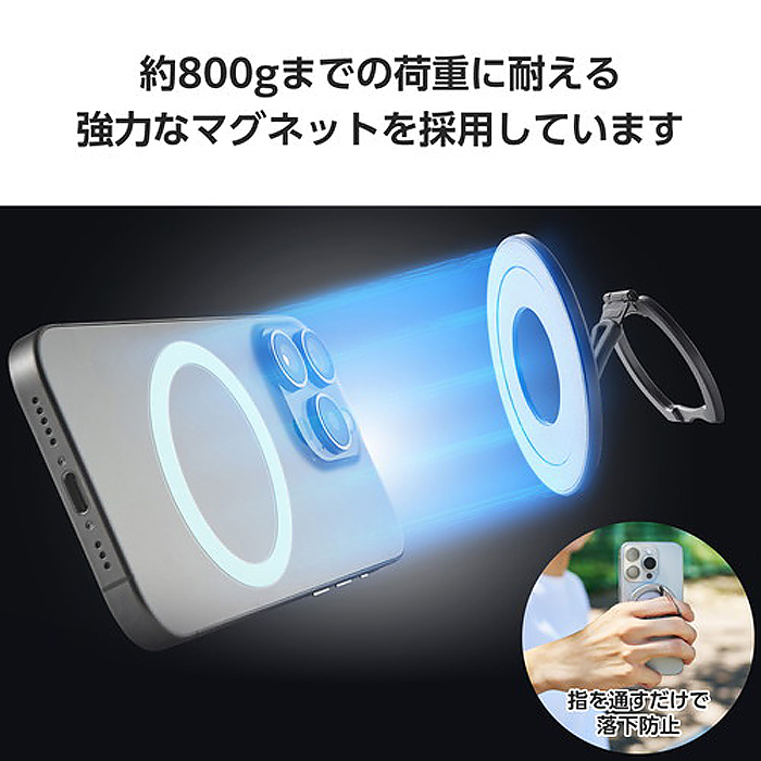●MagSafe対応iPhoneの背面に磁石の力で取り付けることができる、MAGKEEPスマホリングです。