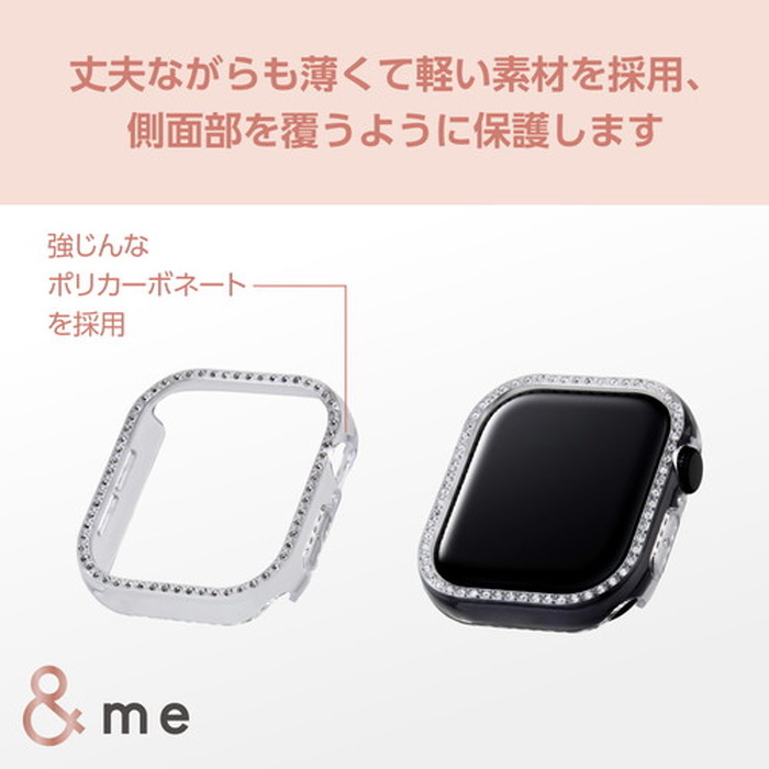 【メール便での発送商品】アップルウォッチ カバー Series 10 [42mm] バンパー ハード 側面保護 ラインストーン &me オーロラクリア