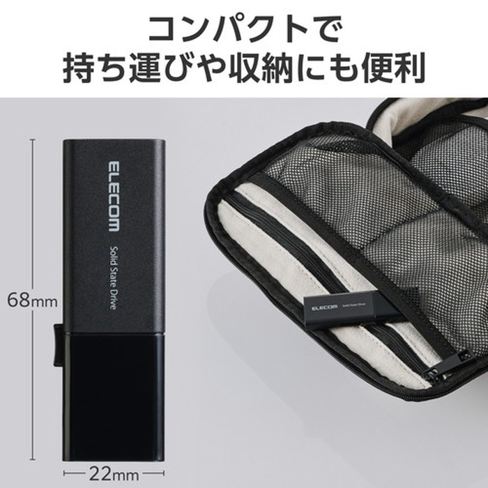 ●従来品のHDD(ハードディスク)と比べて、データの転送速度が速くコンパクトなボディが特長です