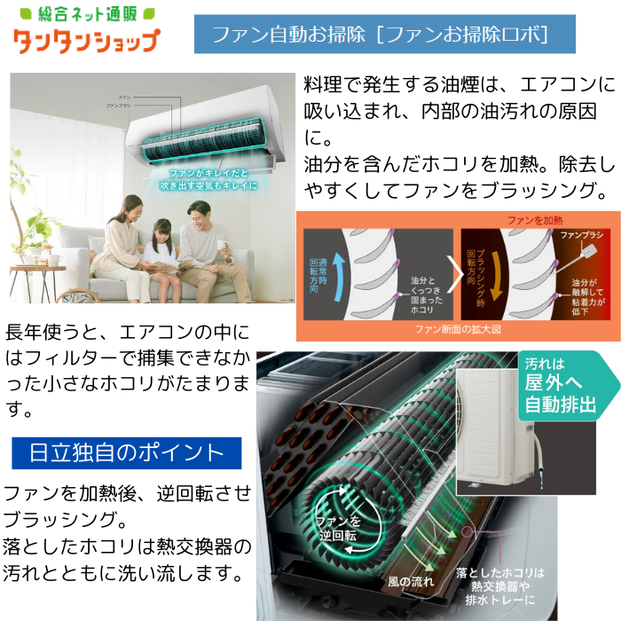 ●ファンに付着した油分を含む汚れを加熱して除去し、清潔な空気を吹き出します