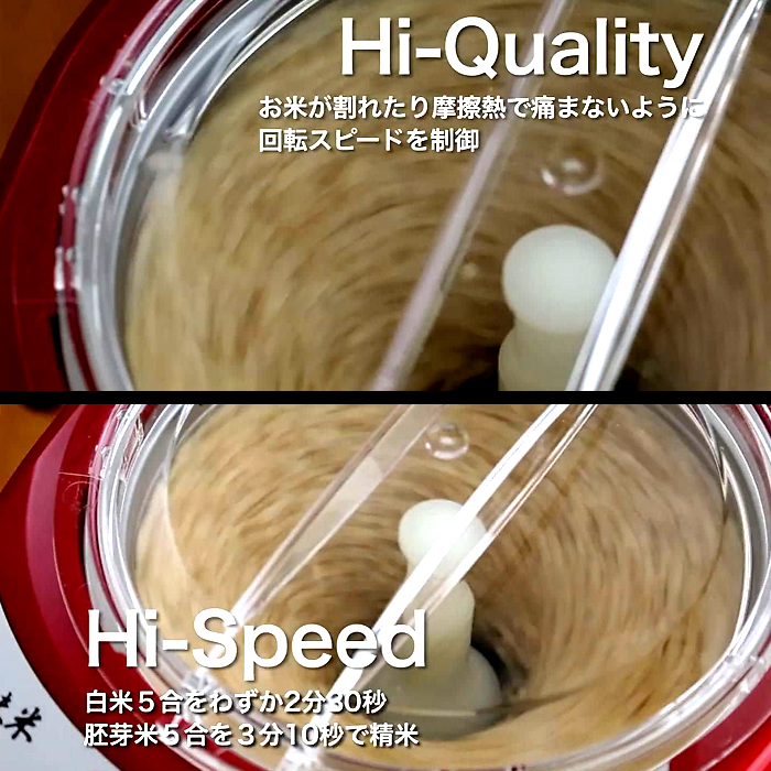 ●マイコン制御で「高速」「中速」「低速」3段階に精米スピードを自動減速することで、精米時の余分な摩擦を軽減し、お米の「温度上昇」「割れ」を抑えます。