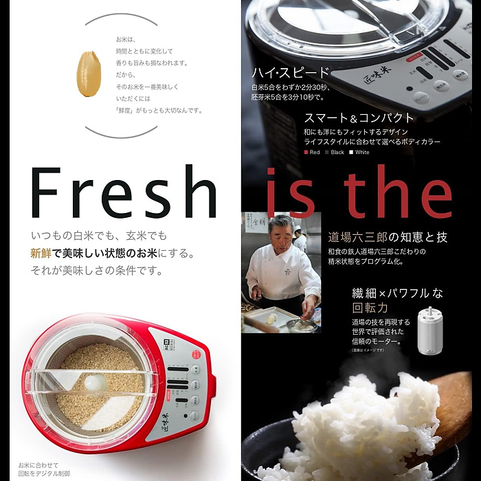 ●料理人・道場六三郎の食味評価により、精米状態を決定しプログラム化。