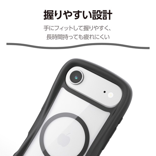 ●中央のくびれ形状に平坦な面を設けることで、手に馴染む快適なグリップ感を実現したGrippyシリーズのハイブリッドケースです