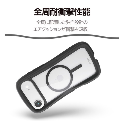 ●全周に配置した独自設計のエアークッションが衝撃を吸収し、背面には高硬度のポリカーボネート素材を採用