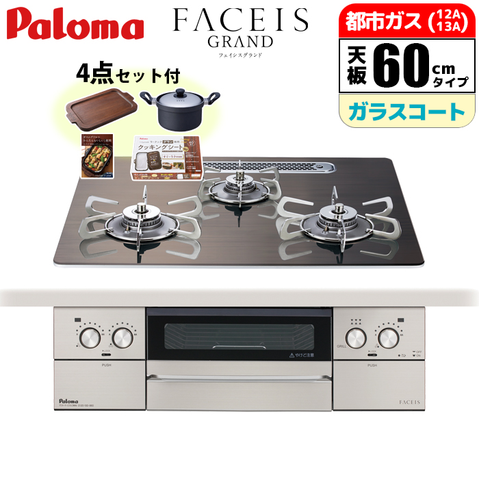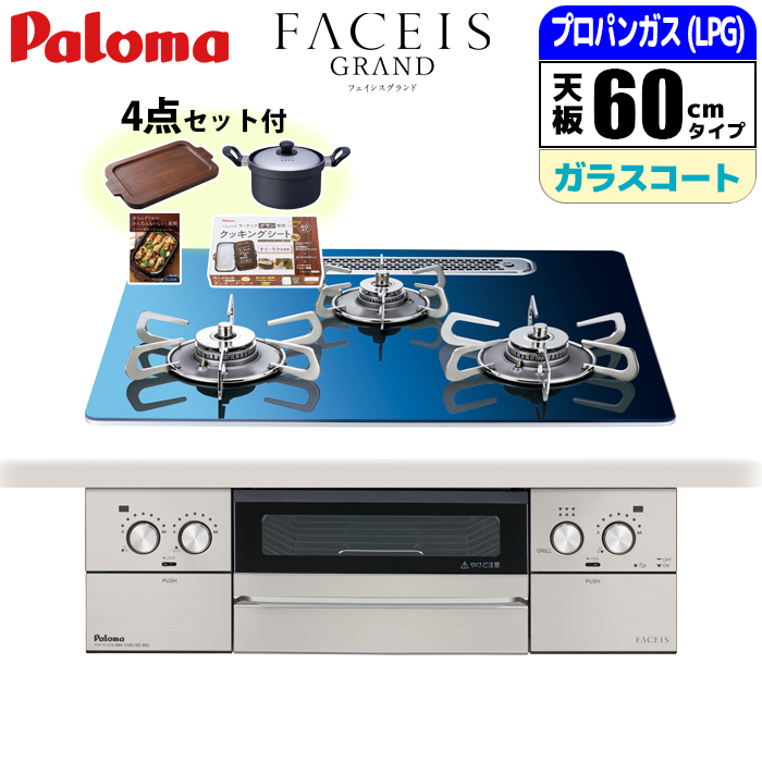 ビルトインコンロ フェイシスグランド 75cm スカンジナビアブルー 都市ガス用(受注生産品につきお届けまで約2ヶ月のお時間が掛かります) 【日本製】台数限定!ラ・クックグラン&専用鍋等の嬉しい5点セット(景品用)になったお買い得品!!(メーカー価格25850円相当)