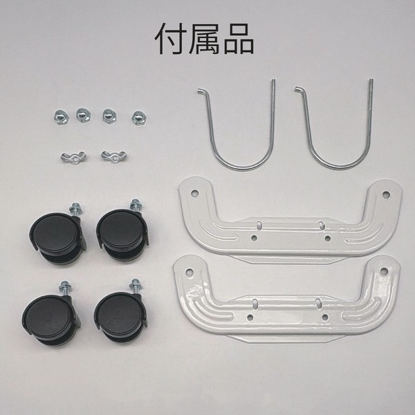 ●本体に加え、キャスター脚やU字ボルトなどの組み立て部品、保証書兼取扱説明書がセットされています