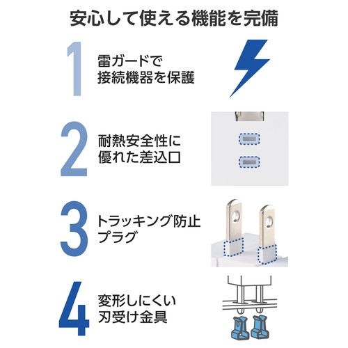 ●プラグには栓刃間に火災の原因となる、トラッキング現象防止に有効な熱硬化性樹脂を配し、感電の危険を抑制する絶縁スリーブを装備しています。