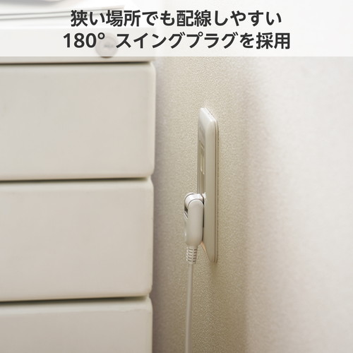 ●狭い場所でも配線しやすい180度スイングプラグを採用しています。