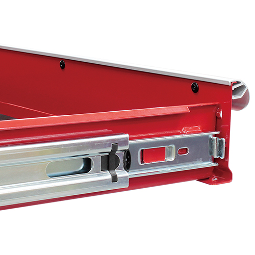 □ 引出しは荷重時もスムーズで静かな開閉が可能なベアリングスライドレールを採用しています。