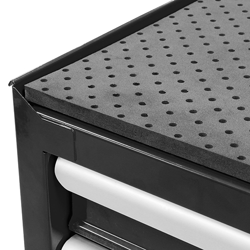 □ 引出しは荷重時もスムーズで静かな開閉が可能なベアリングスライドレールを採用しています。