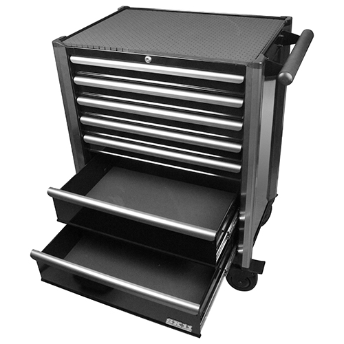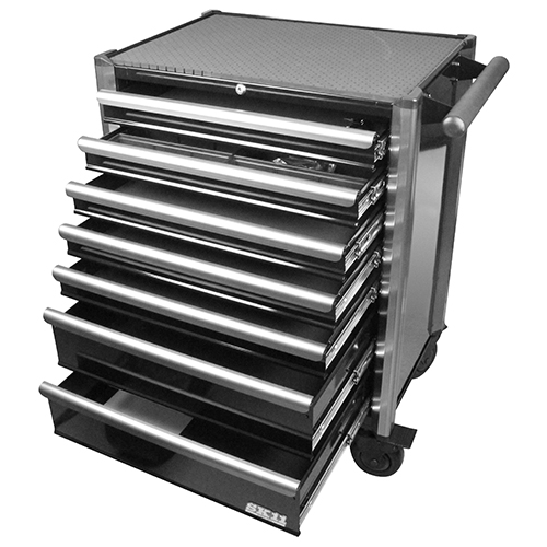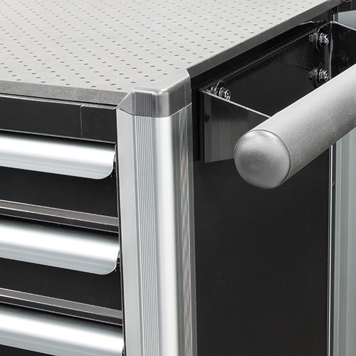 □ 1.2mm厚鋼板を多用し、さらにキャスター部等には補強用鋼板を使用、内部には5本の補強用インナーピラーを使用しています。