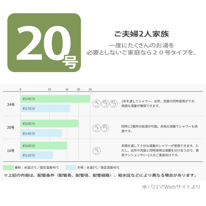 2~3人世帯向けの出湯量「20号」