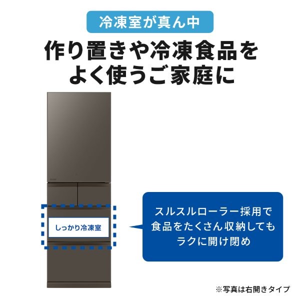 三菱電機 冷蔵庫 解凍不要ですぐに使える切れちゃう瞬冷凍A.I. (フラットアンバーグレー) MR-BD46NL-H