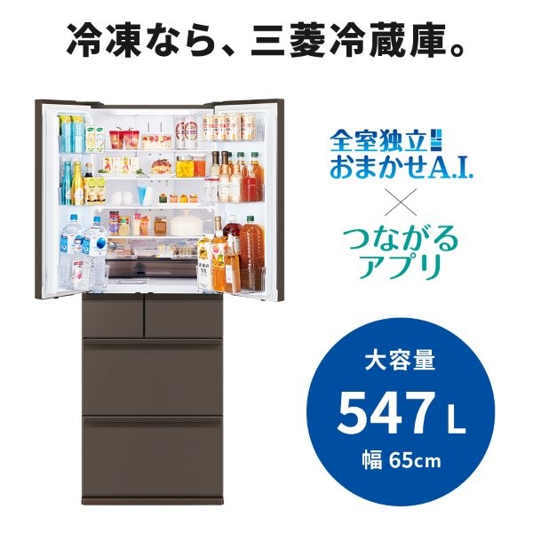 三菱電機 冷蔵庫 解凍不要ですぐに使える切れちゃう瞬冷凍A.I. (グランドアンバーグレー) MR-WZ55N-H