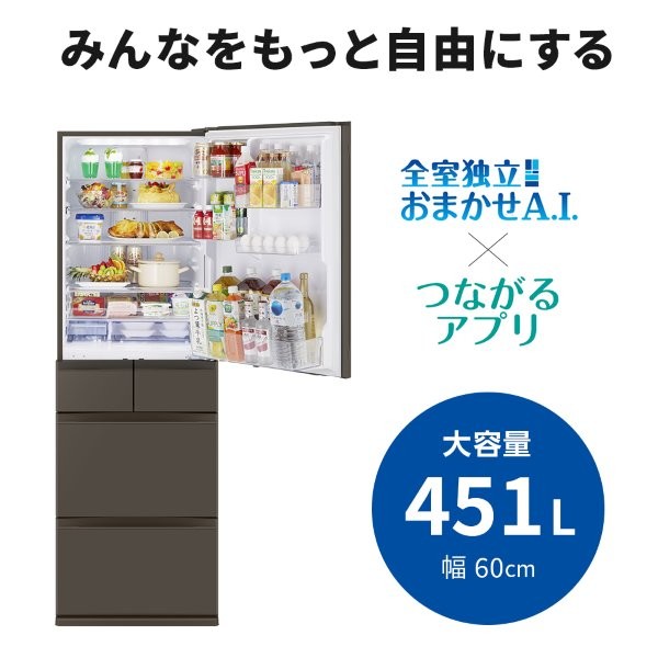 三菱電機 冷蔵庫 解凍不要ですぐに使える切れちゃう瞬冷凍A.I. (フラットアンバーグレー) MR-MD45N-H