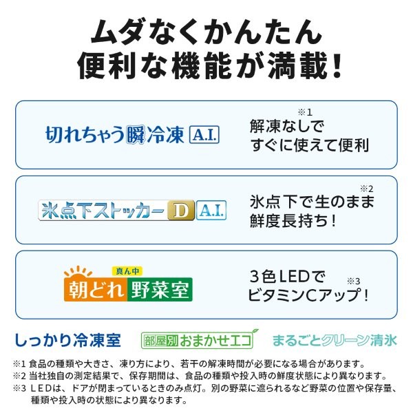 ●解凍不要ですぐに使える切れちゃう瞬冷凍A.I.