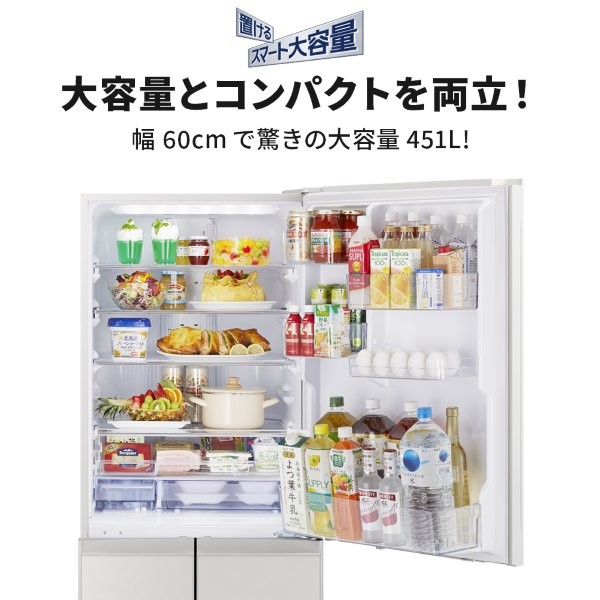 三菱電機 冷蔵庫 解凍不要ですぐに使える切れちゃう瞬冷凍A.I. (フラットリネンホワイト) MR-MD45N-W