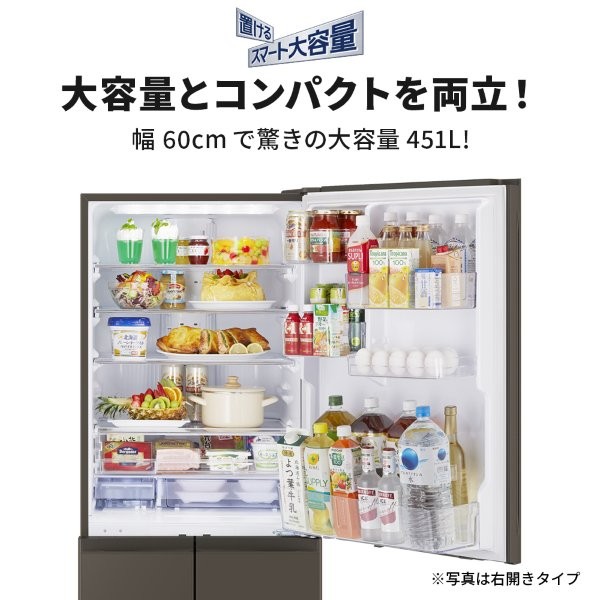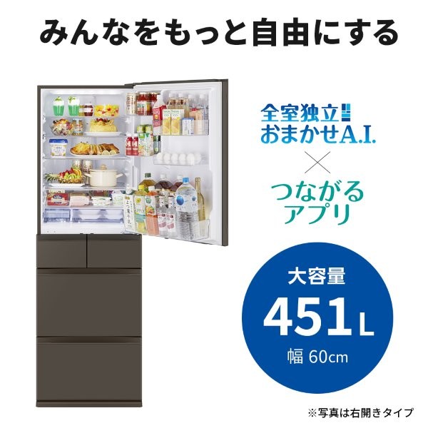 三菱電機 冷蔵庫 解凍不要ですぐに使える切れちゃう瞬冷凍A.I. (フラットアンバーグレー) MR-MD45NL-H