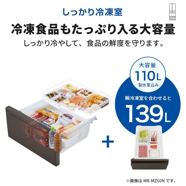 三菱電機 冷蔵庫 解凍不要ですぐに使える切れちゃう瞬冷凍A.I. (グランドアンバーグレー) MR-MZ54N-H