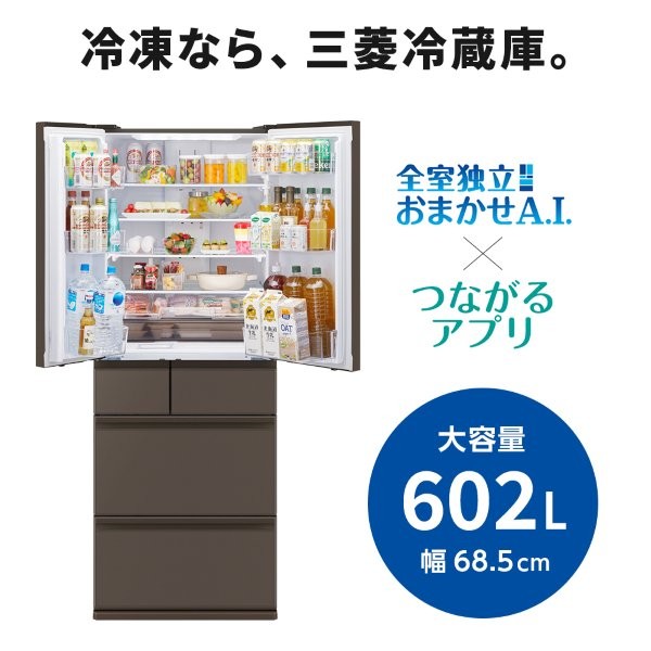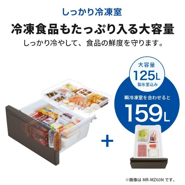 三菱電機 冷蔵庫 解凍不要ですぐに使える切れちゃう瞬冷凍A.I. (グランドアンバーグレー) MR-MZ60N-H