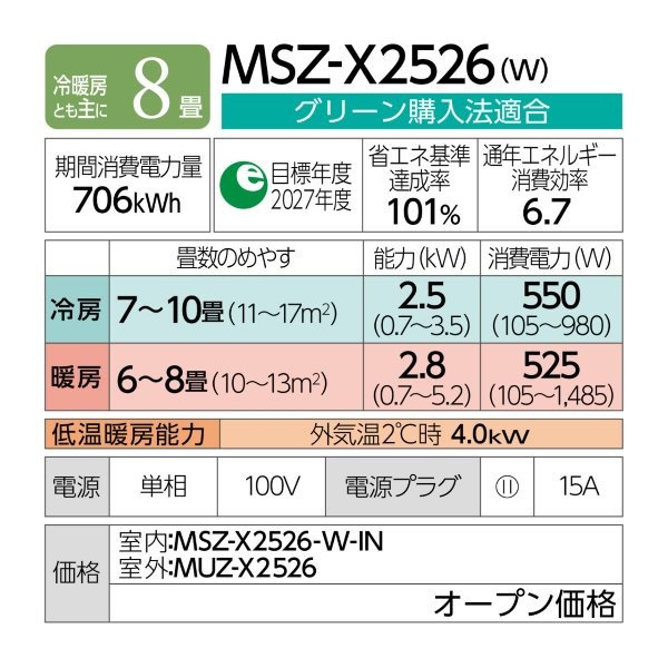 | 商品型番/製品番号 | MSZ-X2526-W |