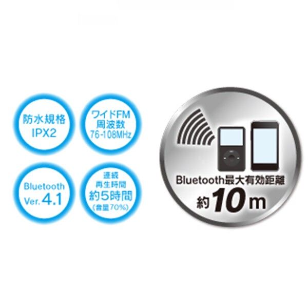 ・防滴仕様(IPX2相当)で、キッチンや屋外でも安心して使用可能