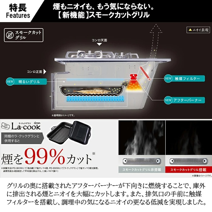 ●【煙もニオイも、もう気にならない。【新機能】スモークカットグリル】