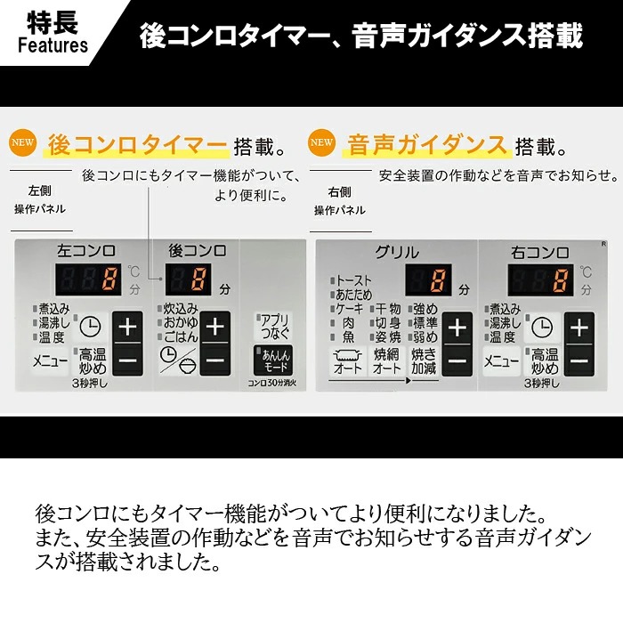 ●・コンロ調理タイマー:1~120分(左右同時可)/ 奥1~99分