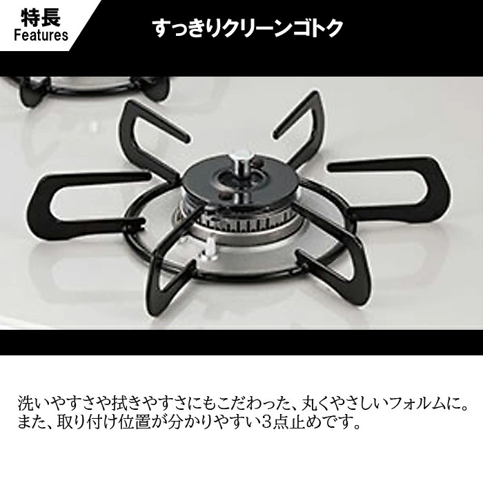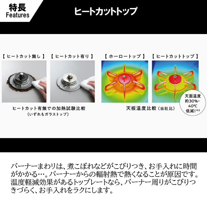 ●温度軽減効果があるトップレートなら、バーナー周りがこびりつきづらく、お手入れをラクにします。