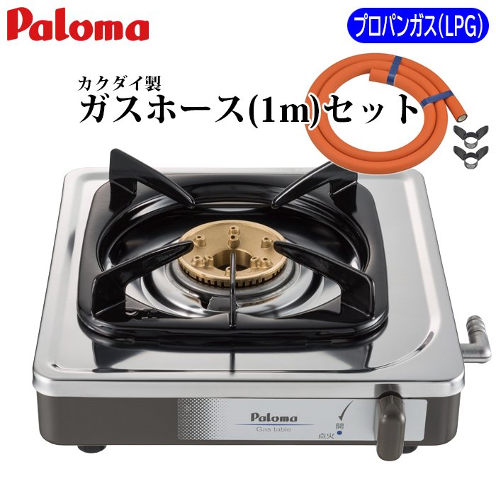 1口ガスコンロ ステンレストップ (プロパンガス)【日本製】ガスホース(1m)セット