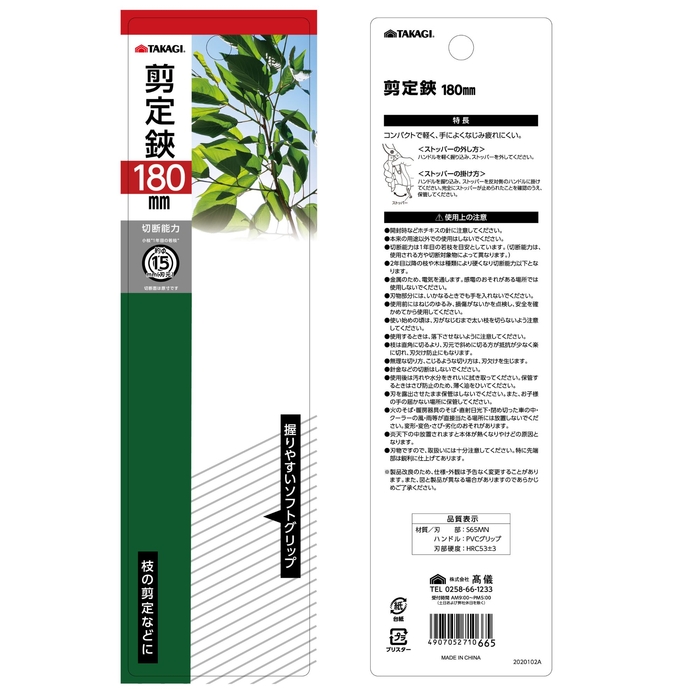 緑園 剪定鋏 180mm 4907052710665