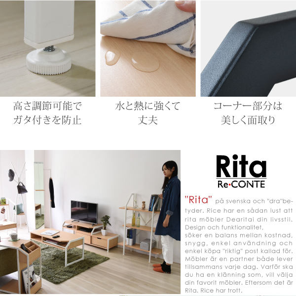 ●また、中段の棚板は3段階に高さ設定が可能なので、レイアウトに合わせて自由に設定できます