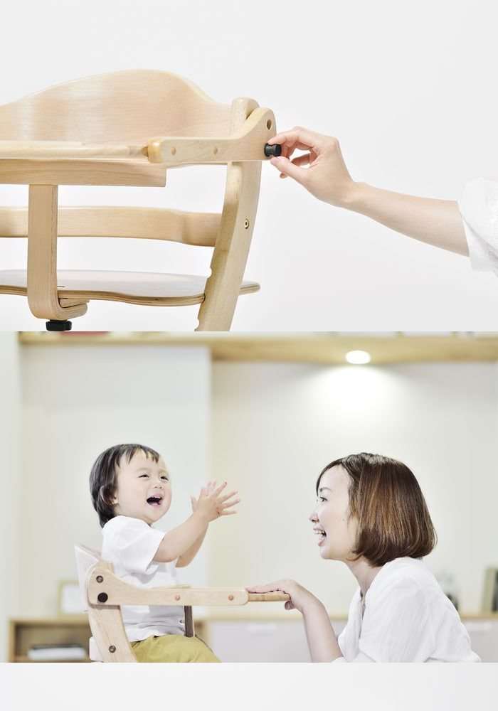 ●座板と足置き板は成長に合わせて細かく高さ調整でき、腰が据わった赤ちゃんから、大人まで使うことができます。