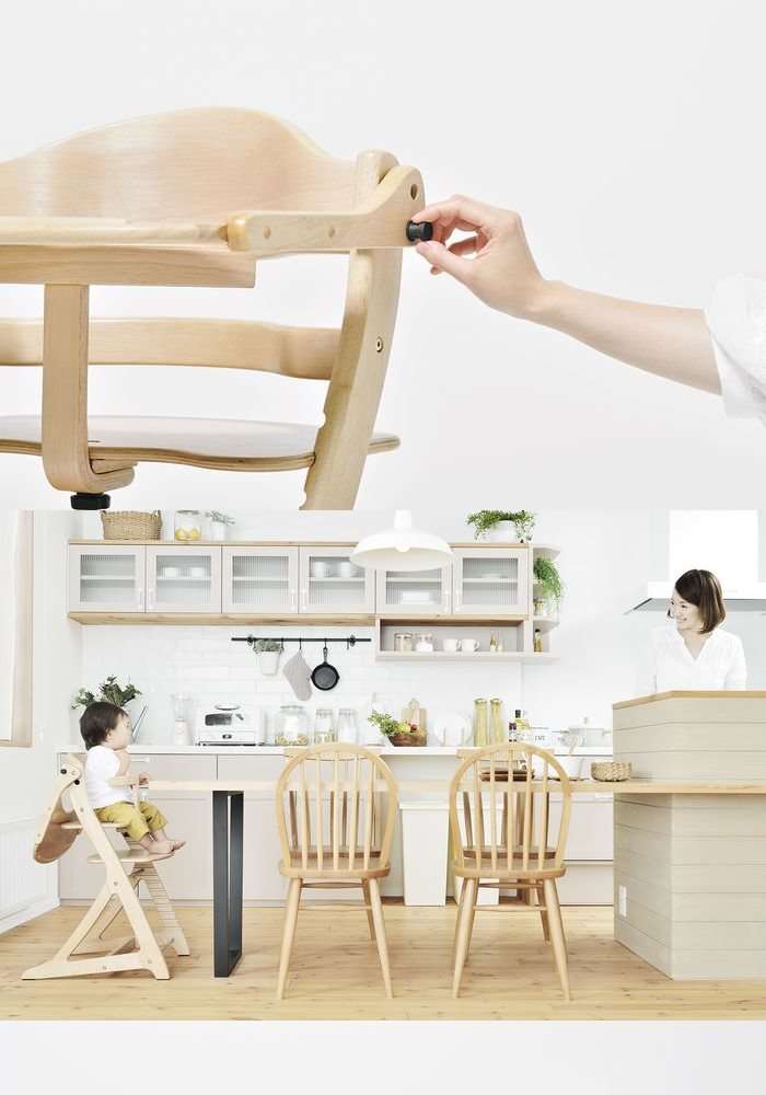 ●座板と足置き板は成長に合わせて細かく高さ調整でき、腰がすわった赤ちゃんから、10才頃の子どもまでちょうど良い高さで使うことができます。