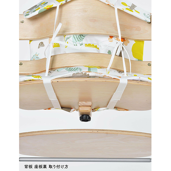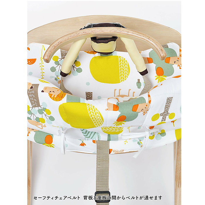●背板と座板の間に別売のセーフティチェアベルトを通すための穴があるので、一緒にお使いいただけます。