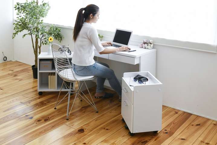 ●幅100cm、奥行45cmのコンパクトなデザインは、書斎でもリビングでも置き場所に困らずご使用いただけます