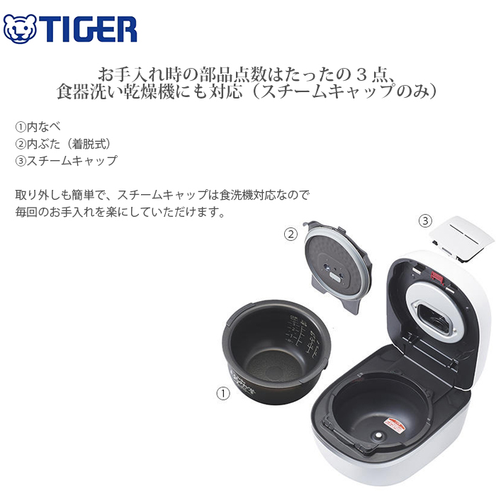 ●毎日のお手入れも簡単。3点のみで、パーツの取り外しも簡単です。(食器洗浄機にも対応:スチームキャップのみ)
