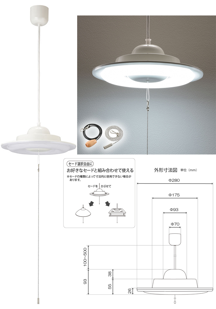 ●付属品:保証書付取扱説明書、プルスイッチ…チェーン(本体装着済)50cm/ひも50cm※1 定格寿命とはあらかじめ設定した条件下での平均値です
