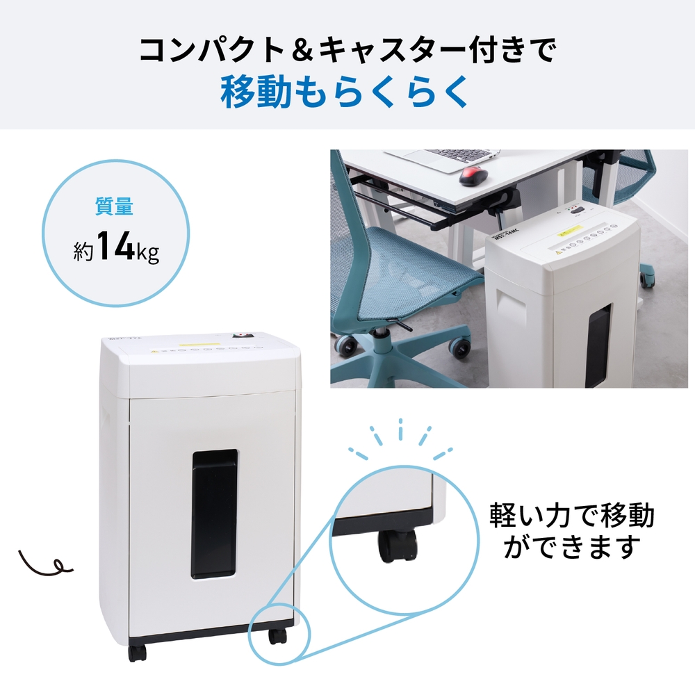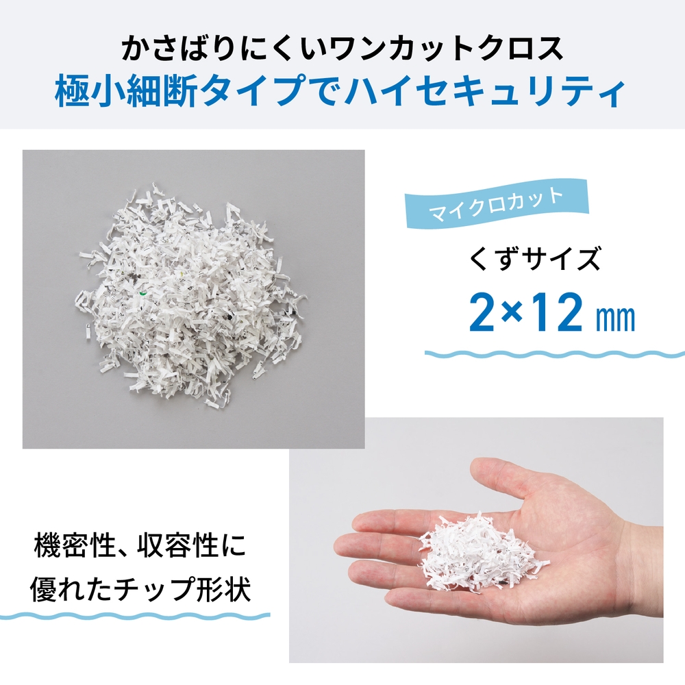 ●カッターが1段のためコストパフォーマンスもよく、くずはチップ状となり、機密性、収容性に優れています。